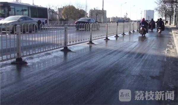 1月14日上午7点多,有淮安市民爆料,称淮安越河路上一辆小型洒水车洒水冲刷工程车散落路面的泥浆,由于户外气温零下导致路面大面积结冰引发多人骑车摔倒。