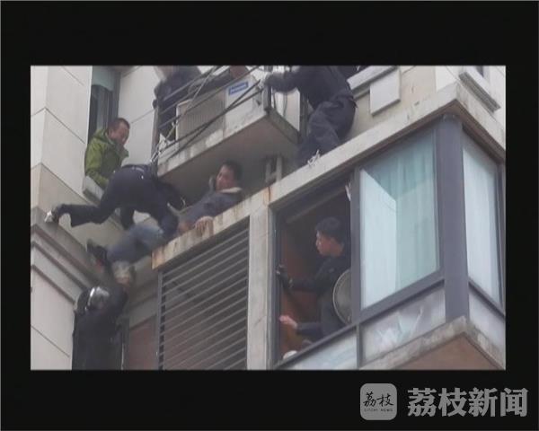 王某某从6楼经窗外先攀爬至5楼,又在6楼至2楼外墙反复攀爬拒捕,他和警方一直僵持着。常熟警方随后启动了应急预案,为确保周边居民安全,迅速开展疏散工作,并立即调集巡特警、消防等警力前往现场增援,相关领导第一时间赶至现场开展指挥工作。但是嫌疑人持刀顽抗拒捕,并以死相要挟。