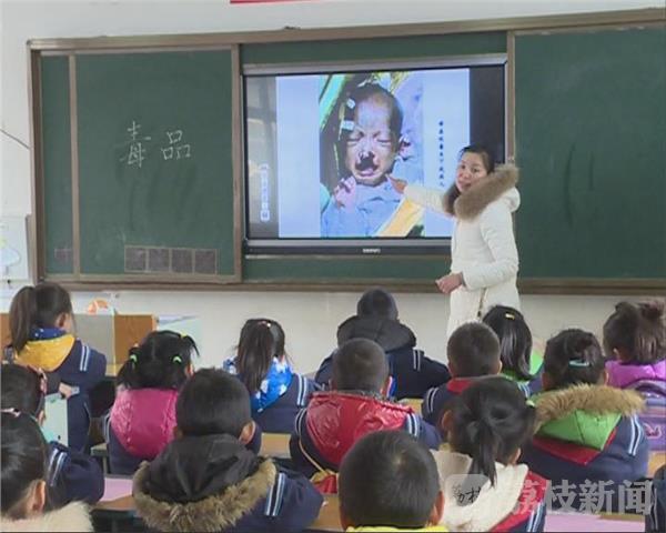 在一年级小学生的班会课的课堂上,一个气球,一只针管,老师们用一个个生动活泼的道具,形象生动地想学生展示毒品给人们带来的巨大伤害,让不少小朋友深刻地认识到毒品的危害。同时,在学校周边还设置了很多禁毒宣传栏,学生们课后都可以自行参观阅读,或者前往学校机房,上网登录禁毒网站,阅读品鉴丰富多彩的禁毒活动,了解毒品类型和危害,做到清楚认识,自觉抵制。