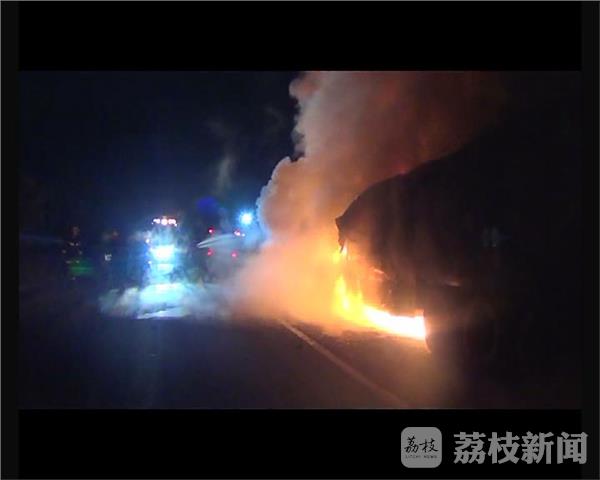记者经询问得知,驾驶员在行驶的过程中突然从倒车镜中看到车底起火,便立即停车直接开门跳出了驾驶室,随后第一时间向119报警。