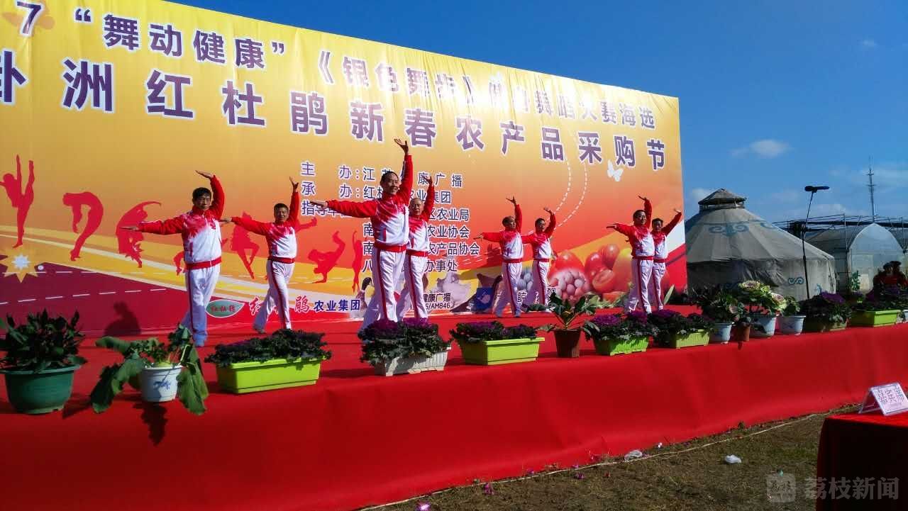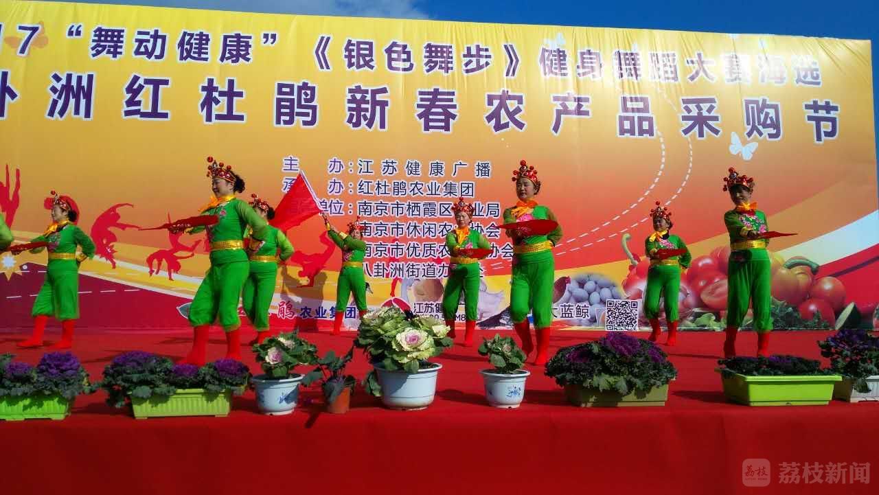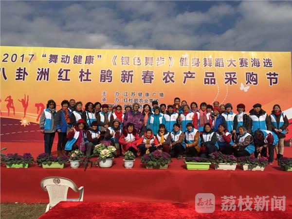 值此一年一度的八卦洲红杜鹃新春农产品采购节之际,江苏健康广播主办2017“舞动健康”《银色舞步》健身舞蹈大赛海选开幕式,以充分展示群众幸福健康、昂扬向上的精神风貌和南京现代农业建设的风采,同时也为南京市民和健身舞蹈爱好者提供了一个既可休闲观光、娱悦身心,又可采购千余种丰富农产品,跳舞+购年货两不误。