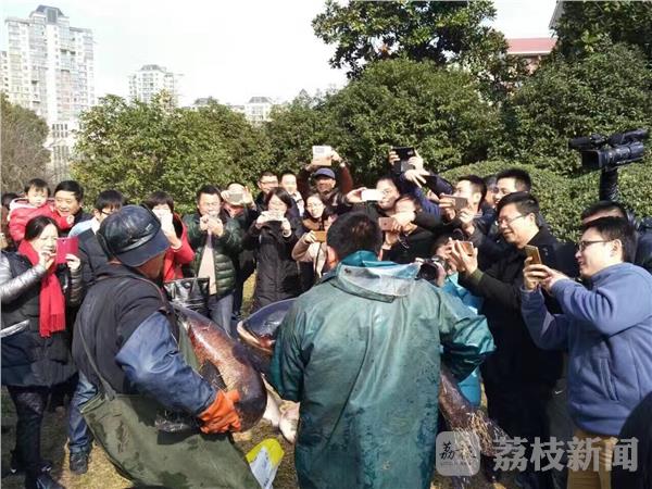 近日,江苏省天一中学的师生为喜迎新年,进行了热热闹闹的“冬捕”活动。据鱼类专家推测,活动中捕到的这条“鱼王”可能有十多岁了。据悉,此鱼一上岸,不少学生高呼:“这鱼是我们一口一口喂大的呀!”
