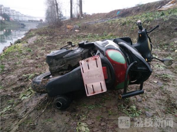 记者来到现场看到,助力车还躺在河边,车头已经破损,据附近群众介绍昨天路过没有发现,今天上午才发现的,随后有人报了警,警方和消防都来勘察过,并没有发现有人落水迹象,记者下午随后从现场遗漏的名片电话联系到失主,失主周先生表示,自己并不知道自己车被人推河里了,随后赶来确认就是自己的车,车子是花500块钱买的二手助力车,已经使用几个月了,最近在汊河镇开了店,平时就把车放路边也没有锁,认为二手旧车没人要,谁知今早来发现车没有了,但万万没有想到会落河里,怀疑有人做恶做剧,或者有人想偷电瓶,看是燃油助车没有电瓶就丢弃河里。