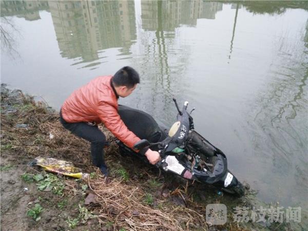 今天(1月18日)上午有群众在扬州汊河镇西银沟河里发现一辆助力车,怀疑有人落水,立即报警,警方在现场寻找并没有有人落河迹象,随后笔者通过现场遗漏的名片联系到失主,失主都不知道自己车子掉河里了,市民怀疑小偷做案。