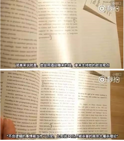 日本APA酒店在客房中放置该酒店集团CEO所著的书籍《真正的日本历史 理论近现代史》,书中美化侵略历史,否认南京大屠杀和强征“慰安妇”的存在。该事件日前在网络上曝光后,引发网友一片声讨。