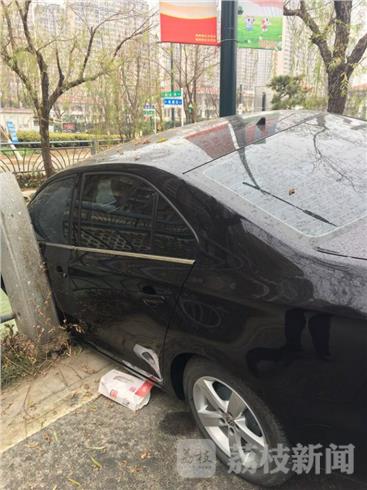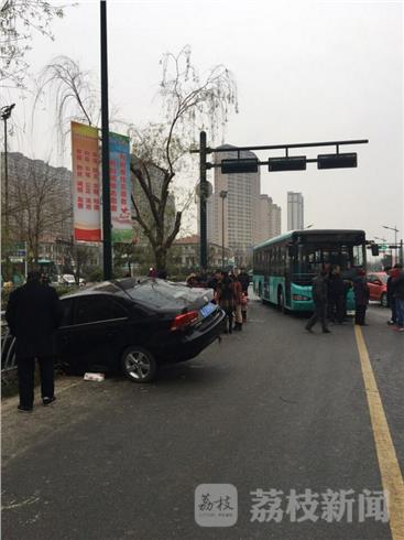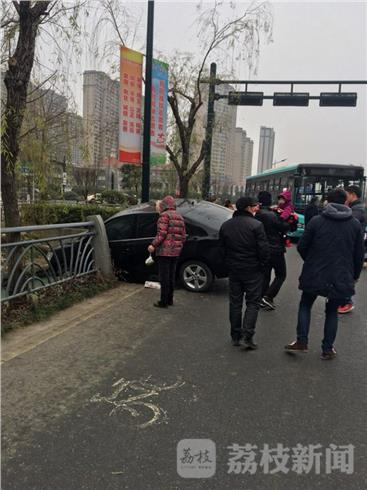 据盐城市民王先生称,在1月18日上午十点左右,盐城市城南新区戴庄路上,一辆正在转弯的公交车与一辆小轿车相撞,小轿车直接撞断路边的铁护栏,而护栏外边紧挨着一条小河,现场可以清楚的看到小车车头已经悬空在河上空,幸亏河边有一颗树挡住了小车,否则小车必将冲进河中。年关将至,各位驾驶员们开车一定要注意观察。