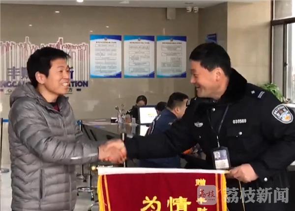 1月19日下午,安徽萧县的杜先生带着锦旗来到徐州丰财派出所,接走了走失近一天的老母亲。原来前天(18日)晚上,徐州市民丁女士在响山路附近健步走,当她过马路的时候,发现一位老太太很无助的站在路旁,于是丁女士赶紧报警救助。