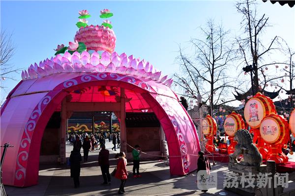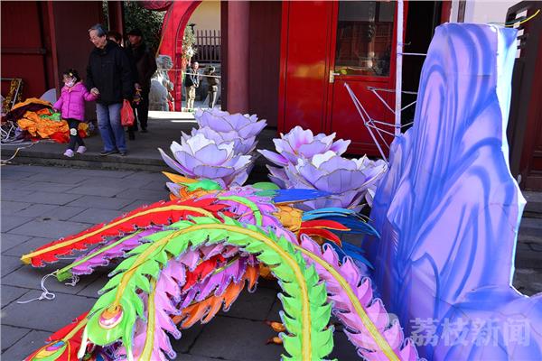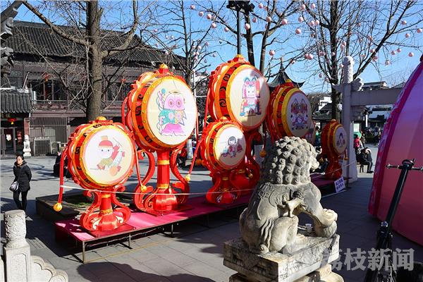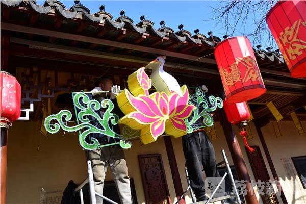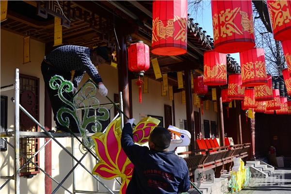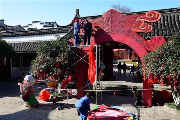 再过7天春节就到了,为渲染浓浓的春节气氛。今日荔枝通讯员在南京夫子庙景区看到,工人师傅正在抓紧布置迎春灯饰,秦淮灯会将于23日正式开幕。