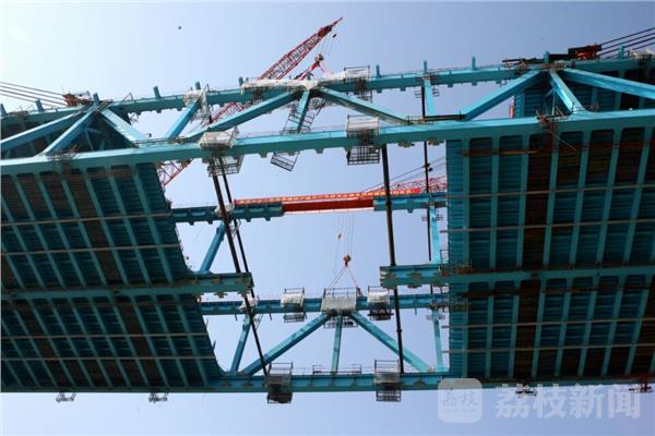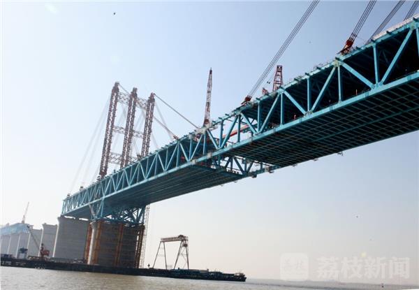 据介绍,天生港航道桥具有体量大、材料新、精度高、合龙准等工程特点。该桥钢桁梁(包括钢拱)重达3.24万吨,每米长度钢结构重量超过50吨,相当于每走一步就要跨过50多吨重的钢结构。该桥受力最关键的墩顶区域和拱肋部位采用量身定做的Q500qE高强度钢,满足了大跨度钢结构受力要求,为我国国内首次采用的最高强度桥梁用钢,该型钢由大桥建设单位组织中铁大桥设计院和鞍山、武汉钢铁厂共同研制并成功生产。