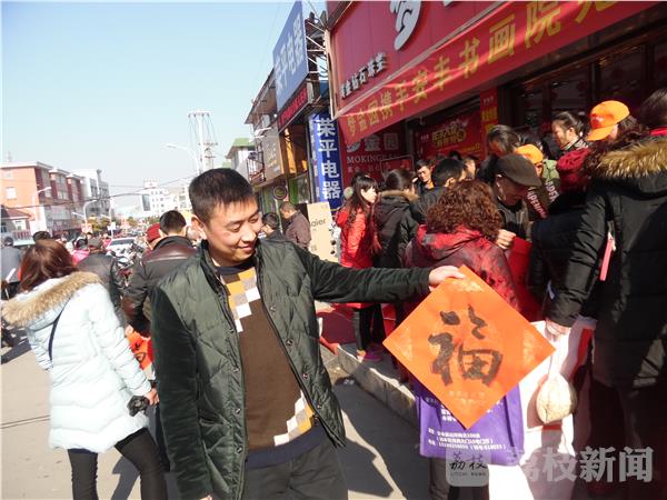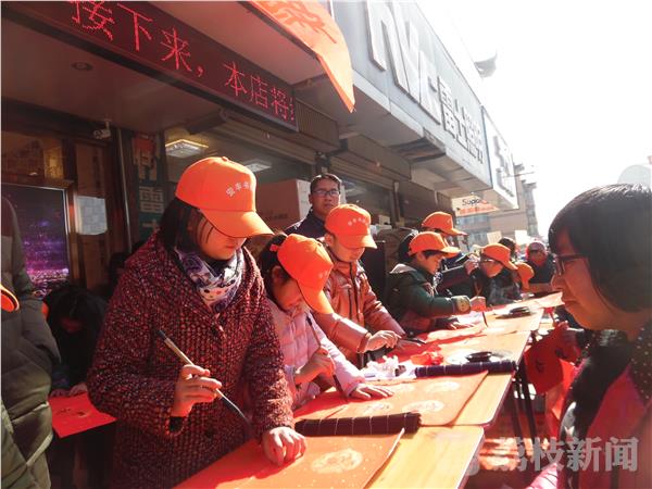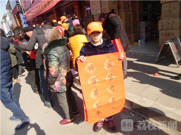 1月23日,兴化安丰镇一书法培训机构在该镇振安桥北侧举行义务写春联活动,培训机构准备了红纸,小朋友们挥毫泼墨,看着一张张饱含小朋友深情的春联,路过的居民拿着免费的春联,笑容绽放在脸上。