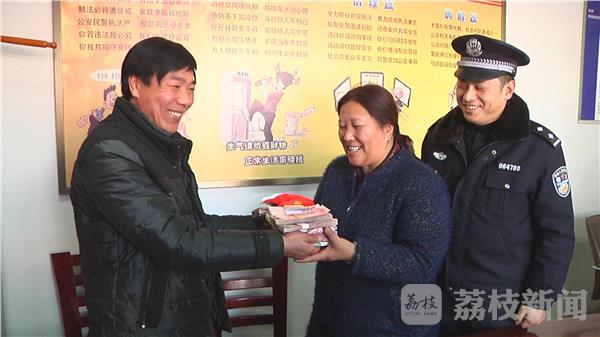 监控显示,这辆后备箱受损的白色轿车,经过海安县城安达广场时,一只装满东西的袋子从后备箱掉了下来,司机浑然不知继续行驶。这时骑车经过的孙家明看到后,把袋子捡起,发现袋子里全是成捆的现金,让他吃惊不小。想到失主一定很着急,孙先生立即把包交到派出所。在派出所里,民警通过监控很快找到了失主,某电子公司会计盛女士。盛女士说,袋子里的钱是刚从银行取出来,准备发给公司员工过年的。不过,取完钱刚出银行不久,车子就被人追尾了,导致后备箱损坏,回到单位才发现钱不见了,心里一下子凉了半截,直到民警打来电话,一颗悬着的心才放下来。经过清点,10.2万元现金和1万元购物卡分文不少,万分激动的盛女士拿出钱,要感谢拾金不昧的孙先生,被孙先生婉言谢绝。