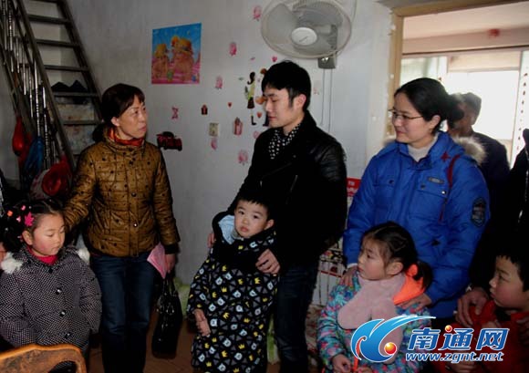 南通网讯(通讯员 晓 遥)春节来临之际,家住南通开发区富新社区的陆婧安(左2)小朋友家里来了一群特殊的亲人,他们是南通第一机关幼儿园的部分师生、家长代表,他们从10多公里外赶过来,为小婧安送来新年的祝福和慰问金。