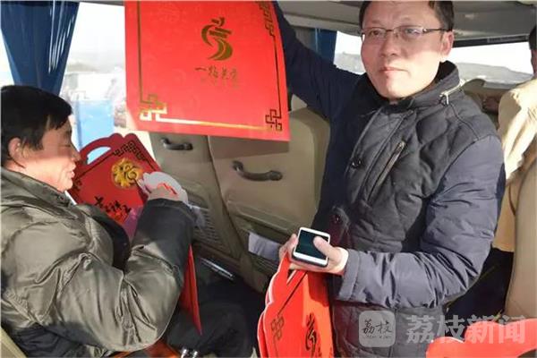 包车上,工人师傅们纷纷表示,这种包车返乡的活动太温暖人心了,工地上就坐上车,下车就到了家门口,就能见着老婆孩子。市公路处的同志还为每个工人兄弟送去了福袋、春联,让他们高高兴兴带着“福气”回家,拿着福袋,师傅们个个都笑开了花。