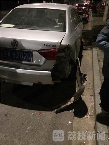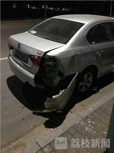 昨天(1月23日)晚上七点左右,在南京市六合区葛新路扬子公交646严庄站附近,一辆停在路边的小轿车被路过的一辆大型渣土车掉下来的轮胎击中,小轿车后保险杠及后备箱严重受损。