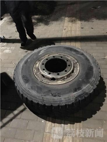 事故发生后小车驾驶员立即报警,六合交警大队民警接到报警后迅速赶到事故现场进行处理。令人啼笑皆非的是,渣土车轮胎掉落驾驶员浑然不知,直到后面轿车驾驶员追到前面500米转盘红绿灯处告诉渣土车驾驶员,他才恍然大悟。