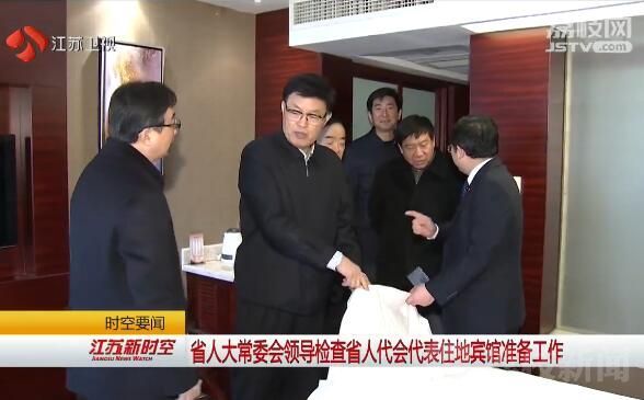 江苏省十二届人大五次会议将于2月6日在南京开幕,会期4天半;大会的各项准备工作已经基本就绪。1月24日上午,省人大常委会党组书记、副主任蒋定之带队对省十二届人大五次会议代表住地宾馆的准备工作进行检查。