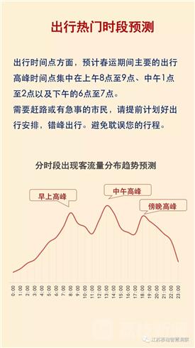 根据大数据预测,从春运最高峰已从24号开始,高峰时间段集中在早上8点至9点,中午1点至2点,以及下午的6点至7点左右。建议市民错峰出行,避免拥堵。