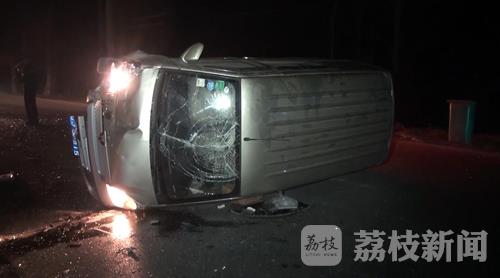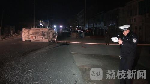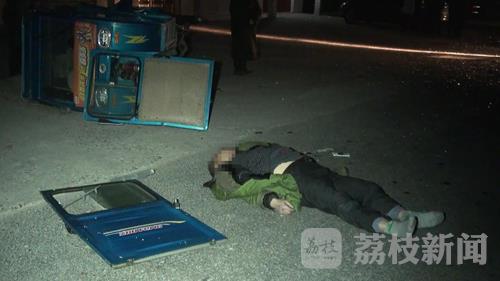 记者赶到现场时看到,一名穿黄大衣的中年男子仰面横躺在由西向东的车道里,地面上有一大滩血迹,已经没有了生命迹象,路南侧的水泥场地上,一辆全封闭的蓝色电瓶三轮车侧翻在那里,车子左侧的两扇车门全部脱落,车厢尾部因受到严重的撞击而凹陷变形,西侧约十多米远的地方,一辆面包车头朝南侧翻在由西向东的车道里,前保险杠断裂,挡风玻璃破碎,路面上到处散落的碎玻璃。一名住在路边的村民告诉记者,事故发生时就听到“轰隆”一声,他在楼上看到肇事面包车驾驶员自行从侧翻的车子里爬了出来,然后向东行走,随后拦了一辆过路的出租车,说是到交警大队去投案自首。死者的妻子赶到现场后,无法接受眼前的事实,跪在地上不停哭泣,央求围观村民帮忙拨打120救护车,把他的丈夫送到医院抢救。据了解,死者晚上驾驶电瓶三轮车送客到通洋,在返回的路上发现没有电了,便靠路边推行,他的妻子得知情况后,就驾驶家里另一辆电瓶三轮车前来接丈夫,谁知道丈夫已于她阴阳相隔了。死者妻子的这一说法,记者随后从一名同样送客的出租车驾驶员处得到了证实。
