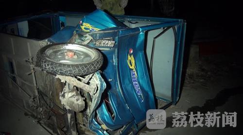 1月25日晚上10点钟左右,在盐城射阳县耦耕办事处三岔口西侧300多米左右,一辆由西向东行驶的面包车,追尾撞上靠路边推行的电瓶三轮车,事故导致电瓶三轮车驾驶员当场身亡,两车损坏严重。