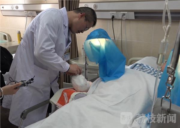 1月25日下午,记者在徐州仁慈医院手足外科病房内,看到了受伤的男孩小提,男孩躺在病床上情绪比较稳定,医生正在为小提做术后检查。