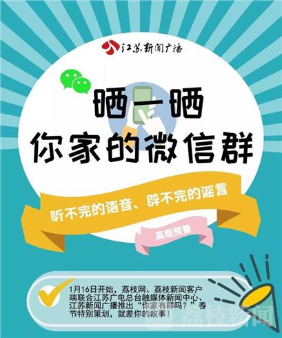春节期间,江苏新闻综合广播AM702、江苏新闻广播FM93.7特别策划“新春走基层”、“你家有群吗——晒晒你家的微信群”,每天持续更新,走进基层、贴近生活,展现每一个听众的新年愿景。