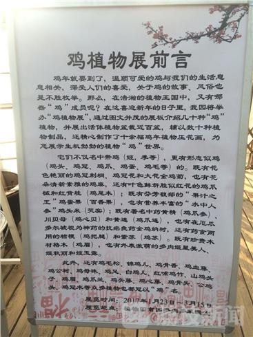 今天是1月26日,腊月廿九,南京中山植物园,以“鸡”为主题的生肖植物展,深受人们的喜爱,关于鸡的故事、风俗也是不胜枚举。那么,在浩瀚的植物王国中,又有哪些“鸡”成员呢?在这喜庆迎新年的日子里,南京中山植物园将举办“鸡植物展”,通过图文并茂的展板介绍几十种“鸡”植物,并展出活体植物盆栽近百盆,辅以数十种植物制品,还精心制作了十余幅鸡年植物压花画,为您展示生机勃勃的植物“鸡”世界。