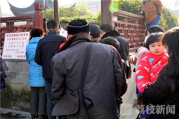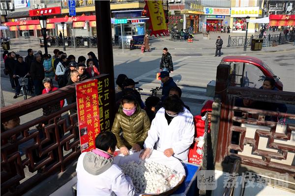 过大年闹元宵,这两天街头元宵很畅销。1月27日,荔枝新闻记者在南京夫子庙花灯市场附近,看到“老太叠元宵”摊点吸引了众多市民排着长队购买元宵。一个排队买元宵的张大妈对我说“他家的元宵特别好吃,我吃了十几年了,每年都要来买,除了自己吃,还买了送朋友” ,为尝“老太叠元宵” 我今天排队苦等了两小时才买到。