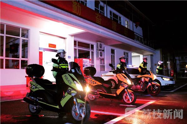 天色渐晚,当许多家庭都围坐在一起热热闹闹地看春晚时,交警一大队的同志们还要上路执勤了。鸡鸣寺每年农历新年都有撞钟祈福的习俗,为了保障交通顺畅,他们整装待发。黑夜里,看到红蓝相间的警灯闪烁,看到那一抹抹荧光绿,市民们知道有民警在,就能过一个安心年。