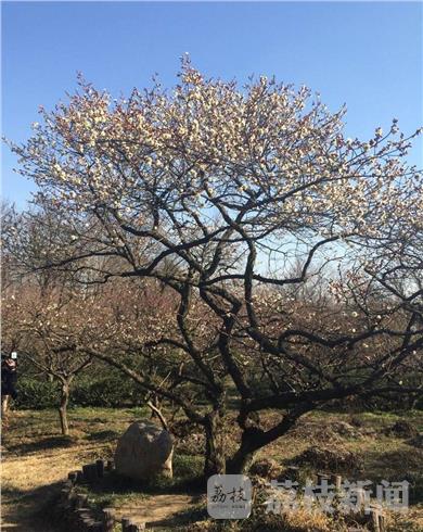 据介绍,南京梅花山共有3.5万余株、360多个品种的梅树,最著名的要数天然生长,枝条相互交错、紧紧依偎的“情人梅”。春节前还闭合的花苞如今已满树绽开,白色的花儿迎风摇摆,清香四溢。不少银发夫妻、青春恋人,就在“情人梅”前留下了一张心花怒放的甜蜜合影。