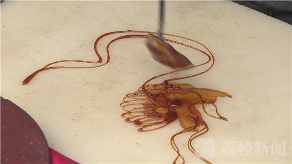 费女士一家来自上海,不光她12岁的女儿看得啧啧称奇,也唤起她对小时候年味儿的记忆。这位糖画艺人兰师傅来自四川,已经有十几年没有回家过年了,每逢节日,他就在苏州用糖画给节日添趣味。