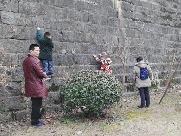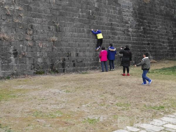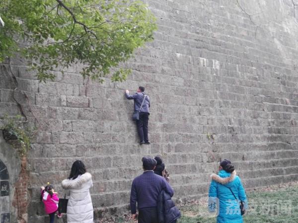 春节期间去老门东游玩的游客很多,在老门东附近的城墙上有很多人在往上爬,有路人提出不能爬,这是文物,爬上去,也不安全时,爬城墙人给出的理由竟然是“春节爬城墙,年后节节高”。