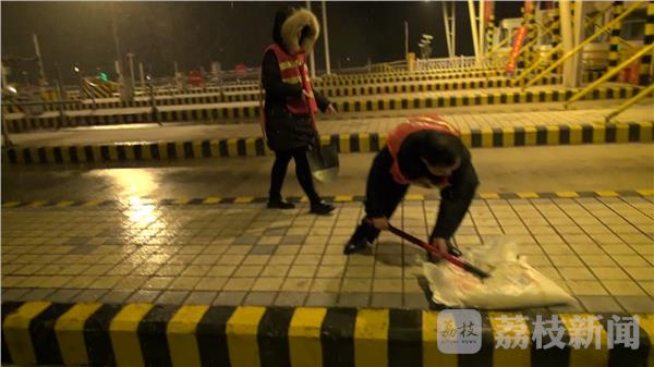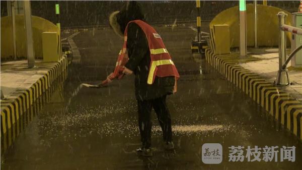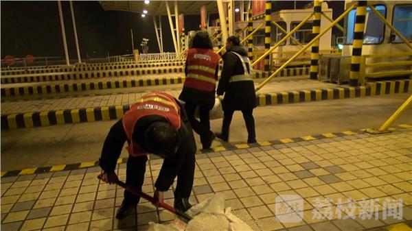 随后记者到大丰收费站看到,工作人员己经开始撒盐防止收费站境内结冰和路面打滑引发事故,高速交警也全部待命,到记者发稿时沈海高速大丰收费站己经全部封闭,禁止一切车辆上高速。
