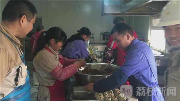 大年三十当晚,项目部食堂里热闹非凡,餐桌上各种菜肴非常丰盛,大伙苦中作乐、欢度新年。远在异国他乡,工人们还没忘了给家乡人民送上祝福。