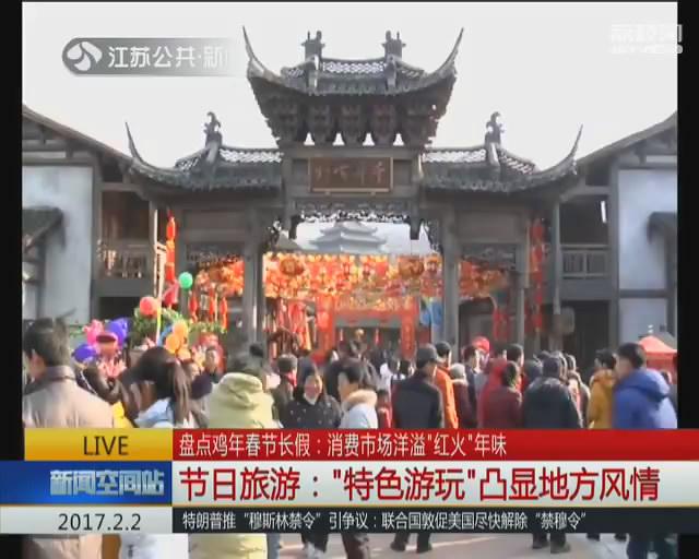 春节期间,淮安运河博物馆群全部免费对外开放,不仅有大量实物,还通过4D影院、场景幻影成像等高科技技术,全面展示了历代古城的恢宏历史和灿烂文化,春节长假期间,来此观赏的游客超过一万人次。镇江句容千华古村通过举办冰雪节和美食节,吸引了众多国内外游客,黄金周共接待游客接近14万人,茅山景区特别策划了幸运大转盘、鸡年大拜年等新春系列活动,累计接待游客45.33万人次,同比增长18%左右。