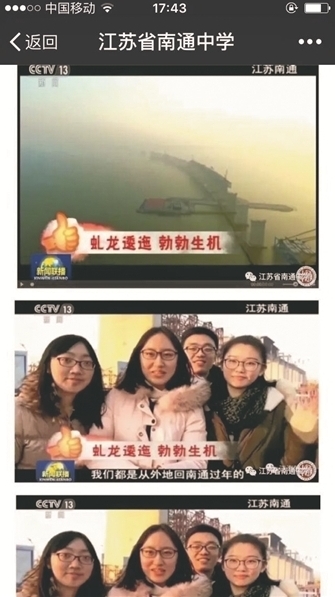 “‘厉害了!我的国’上了央视新闻联播”,新春佳节期间,这条新闻在移动互联网社交平台频频刷屏。不少南通人在打听这四位优秀回乡学子毕业于哪所高中?现就读于哪所大学?