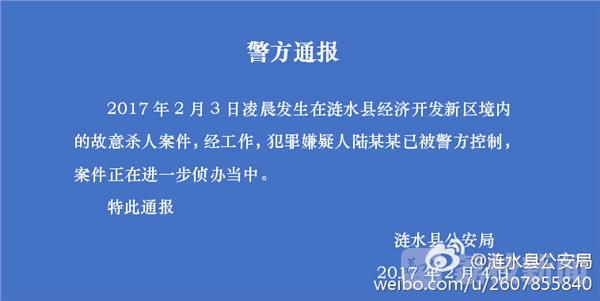据现场知情人说,死者是本地人,丈夫是河南人,目前死因不太清楚。直到2月4日上午当地警方发布微博称,犯罪嫌疑人陆某某已被警方抓获,案件正在进一步审理当中。