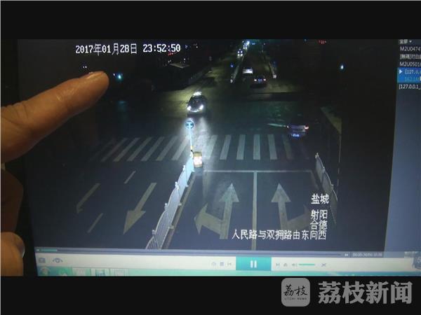 从道路监控拍摄的视频里看到,1月28日深夜11点53分左右,一辆面包车沿人民路由东向西行驶至双拥路下午十字路口时,方向突然失控撞上路中央的护栏,车辆就地旋转一百八十度后,由又与路边护栏发生轻微碰撞,事故发生后,肇事车辆驾驶员并没有停车报警,反而在原车道里逆向逃离了现场,大约过了七、八分钟左右,肇事车辆又返回事故现场,捡起一块掉落在现场的牌照后,迅速驾车向西离开了现场。接到过路市民的报警后,射阳县公安局交通警察大队事故处理中队民警迅速调取了事故现场周边摄像头拍摄的监控视频,从中锁定了县城居民杨某有重大的嫌疑。经询问,杨某对撞坏护栏后肇事逃逸的违法事实供认不讳,据杨某交待,当天夜里驾车经过该路段时,正在玩手机,导致车辆方向跑偏失控,撞上路中央的隔离护栏。