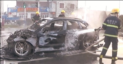 现场火借风势,燃烧十分猛烈,整辆保时捷顿时陷入了火海之中。当地消防队员赶到现场后,立刻用水枪对着火的保时捷喷洒。经过消防部门的全力扑救,火势被控制住。但保时捷被烧成空壳。由于担心车内的燃油会再次复燃,消防部门用水枪对车内车底再次进行降温。
