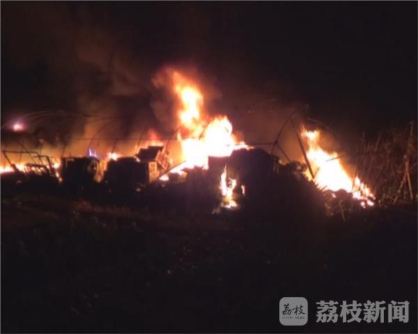 2月7日晚9点,无锡市锡山区黄泥湾村发生火灾,村内一处蔬菜大棚起火燃烧,过火面积约60多平米,现场火势较大,浓烟弥漫,幸好无人员被困。