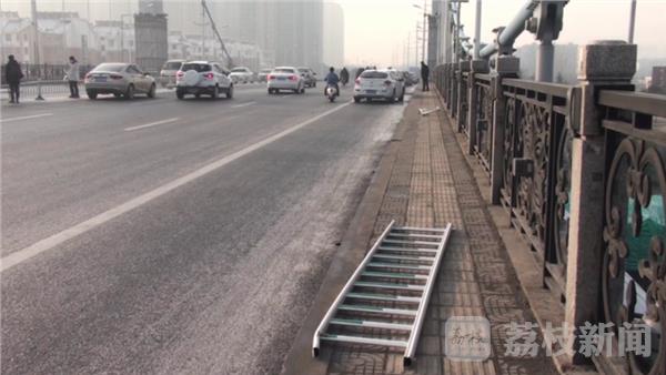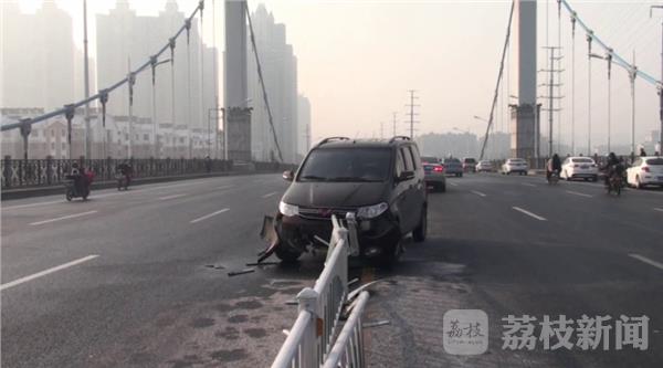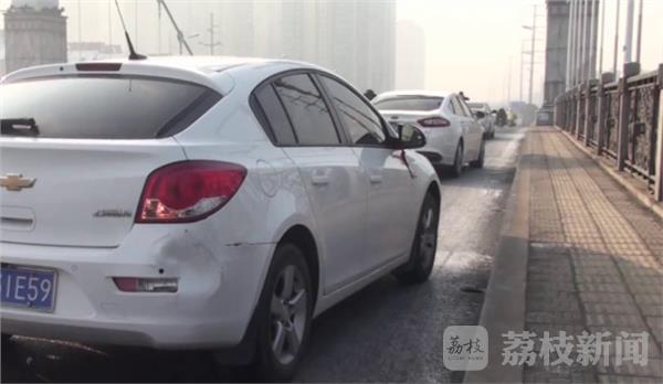 现场看到通往大桥路面结了一层冰,路面非常湿滑稍不注意就会滑倒,清浦大桥路中央一辆五菱轿车因为路面结冰打滑撞毁七八米护栏后卡在护栏上难以动弹,就在路对面又发生了两起两车相撞事故。据司机透露,事故发生因为前车撞车后,后面刹车打滑撞了上去。