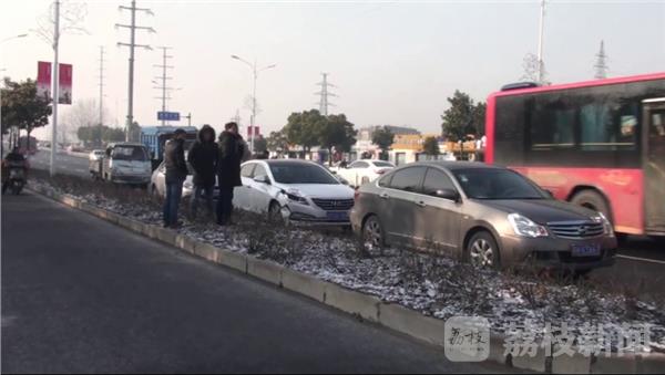 而在大桥东侧也发生了因为路面结冰打滑发生了多起撞车,多辆车发生相撞幸好无人员受伤。就在大桥南侧柯山路上一辆轿车因为路面结冰打滑撞上一辆电动车,二河大桥上因为路面结冰也发生了撞车事故,里运河大桥上也发生了多起撞车事故。