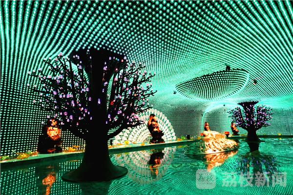 南京大报恩寺夜公园,包括:圣地广场、主门厅、南画廊、内庭广场及地宫全面对广大游客开放。游客们可以在这里除能观看到南京艺人复原的600年前的巨型鳌山彩灯。鳌山灯是秦淮传统花灯中的精品,曾长期失传。这次,由一位年轻设计师牵头,红多方走访秦淮老艺人、查找文献资料、寻找扎制技艺,终于将600年前明朝皇宫传出的鳌山灯复原再现。与此同时,游客们还能在这里观看自贡扎灯艺人们扎制各种以报恩题材的大型灯彩。