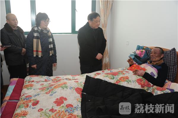 2月9日上午,江苏省见义勇为基金会常务副理事长朱义泉、秘书长倪红娟专程到江阴市周庄镇看望慰问“救火英雄”夏建忠。