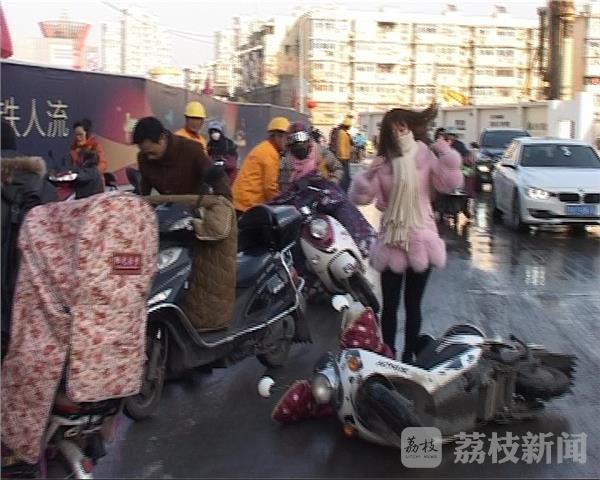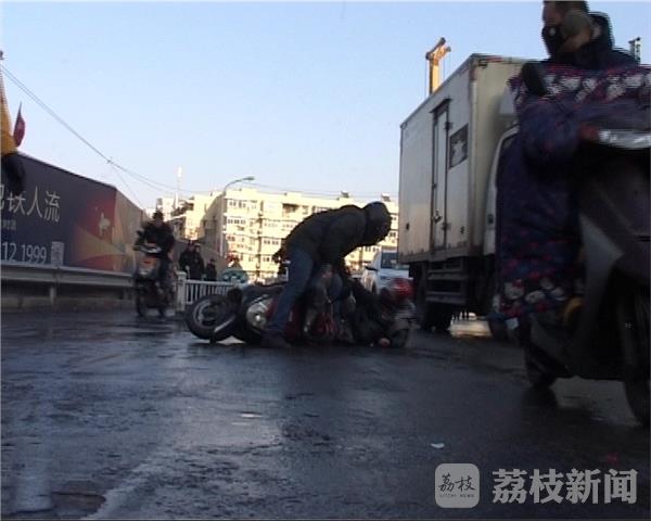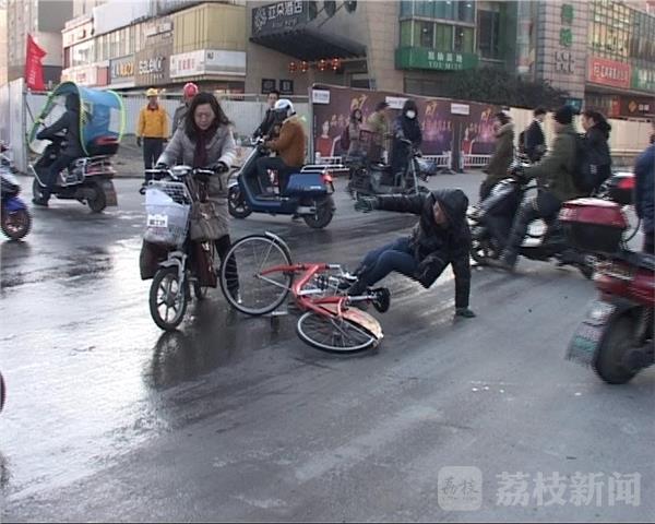 今天(2月10日)早上,骑车经过南京湖南路的不少市民纷纷跌倒,荔枝新闻记者赶到现场发现,整个马路就像一个溜冰场,那么,这里为什么会大面积结冰呢?