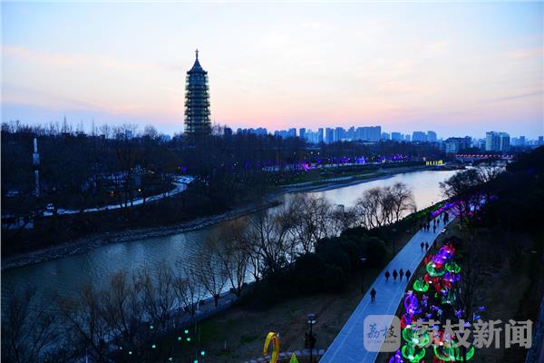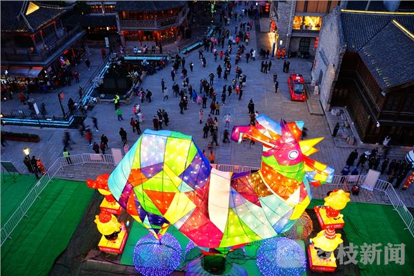 记者在城墙上看到,老门东、大报恩寺遗址公园灯会美不胜收,印证了老门东、大报恩寺遗址公园灯会主题“金鸡迎盛世·花灯耀古城”,特别美。
