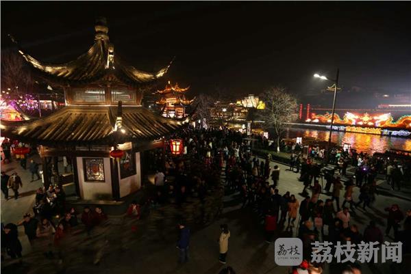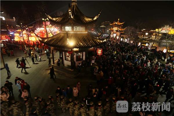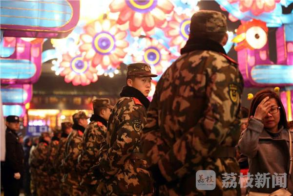 2月10日,第31届中国·秦淮灯会迎来元宵节前客流最高峰期,南京夫子庙人山人海。今年灯会,设立了“三带三片”灯展布局,且适逢周末,迎来前所未有的密集人流和多波次集中“观灯潮”,数十万海内外游客来到夫子庙和大报恩寺遗址公园、晨光1865园区景区观灯赏景,武警江苏总队投入千余名兵力,联合特警、消防等警种人员进行分片巡逻、定点值守,全力做好灯会安全保卫工作。