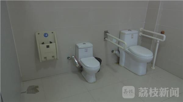 另外,记者发现,在成人用的马桶两侧不仅有扶手,在马桶的右侧墙面上还有电子按钮,这又是做什么用的呢?云龙湖环境卫生管理站副站长 桑孝丰:“这个按钮是报警器,为了有残疾人出现问题的时候报警,我们管理人员直接到现场,按一下,在管理间保洁人员会听到,马上就过来了。”