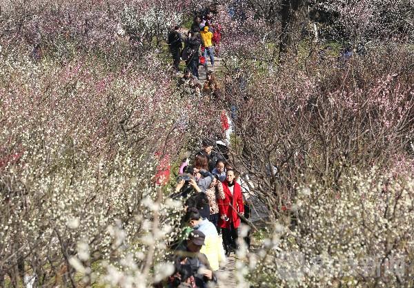 2017年2月11日是农历正月十五,传统的元宵佳节,南京艳阳高照,南京赏梅胜地古林公园梅岭的梅花竞相绽放,引得游人纷至沓来,景区“沦陷”成“人海”,游人如春运漫山遍野。