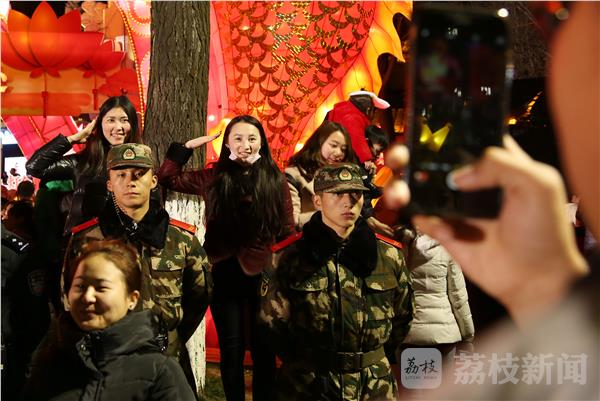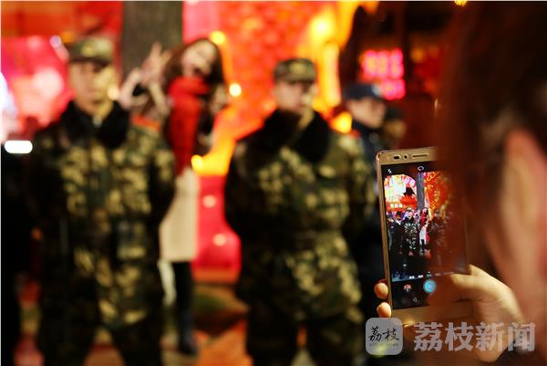 当元宵节遇上周末假,又恰逢天气清朗月儿圆,南京的夫子庙灯会成为人们休闲的好去处!今年的灯会,人们除了观月、赏灯、猜灯谜,又多了一大“趣处”,现场执勤的武警官兵挺拔的pose引来不少游客驻足欣赏、拍照留念!