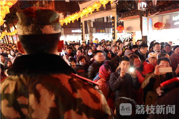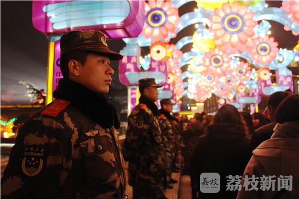花灯与迷彩交相辉映,挺拔的身姿筑起一道道“墙”,守卫着现场的平安!